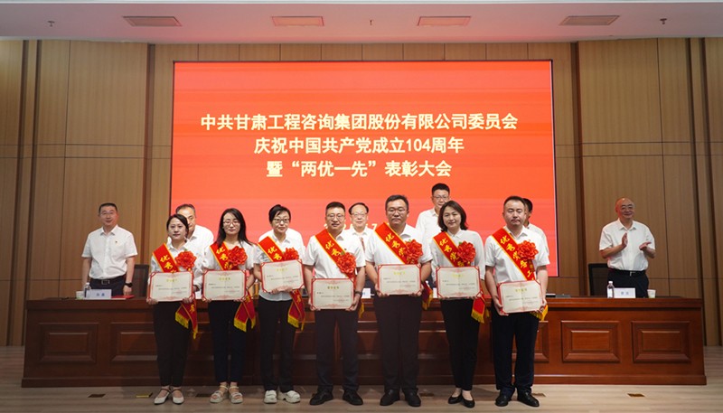 7月1日,甘肅工程咨詢集團(tuán)召開慶祝中國共產(chǎn)黨成立104周年暨“兩優(yōu)一先”表彰大會,回顧黨的輝煌歷程,弘揚(yáng)偉大建黨精神,全面展示集團(tuán)黨建工作成效和黨員干部昂揚(yáng)風(fēng)貌,激勵各級黨組織和全體黨員凝心聚力、擔(dān)當(dāng)作為,奮力推動集團(tuán)公司高質(zhì)量發(fā)展邁向新臺階。集團(tuán)公司黨委書記、董事長張佩峰出席并講話,總經(jīng)理、董事陳一夫及在家領(lǐng)導(dǎo)班子成員出席,黨委委員、副總經(jīng)理孟康榮宣讀表彰決定,紀(jì)委書記、監(jiān)察專員師宗正主持會議。