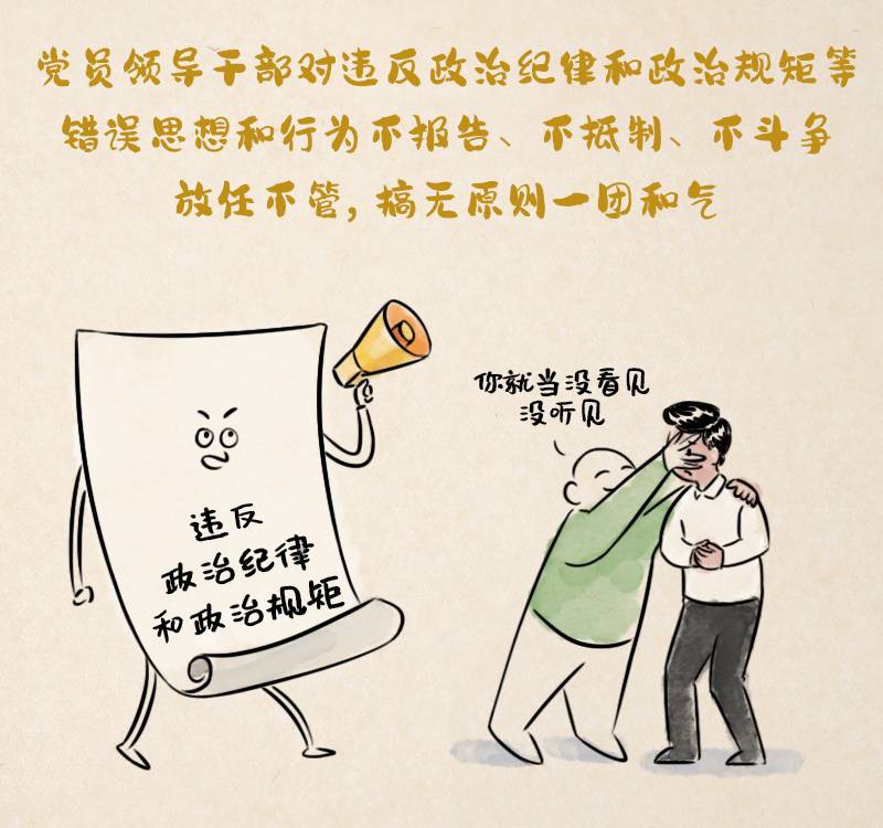 第七十五條 黨員領(lǐng)導(dǎo)干部對(duì)違反政治紀(jì)律和政治規(guī)矩等錯(cuò)誤思想和行為不報(bào)告、不抵制、不斗爭,放任不管,搞無原則一團(tuán)和氣,造成不良影響的,給予警告或者嚴(yán)重警告處分;情節(jié)嚴(yán)重的,給予撤銷黨內(nèi)職務(wù)或者留黨察看處分。