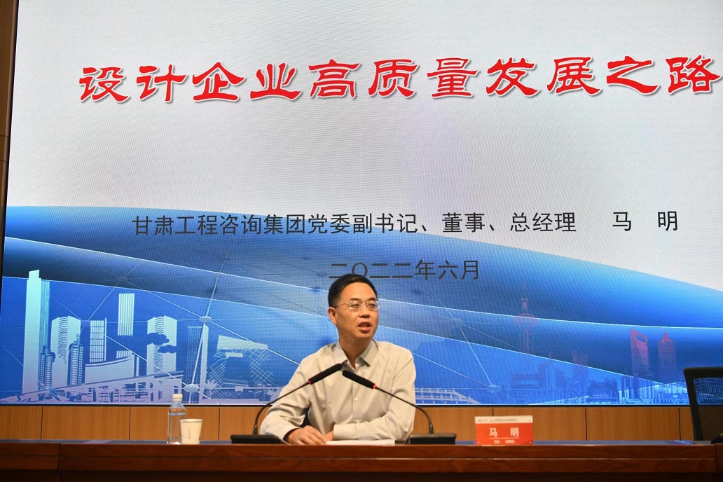 6月9日,在甘肅省建筑設(shè)計(jì)研究院有限公司喜迎建院70周年華誕之際,集團(tuán)公司黨委副書記、總經(jīng)理馬明受邀以《設(shè)計(jì)企業(yè)高質(zhì)量發(fā)展之路》為題作專題講座。集團(tuán)公司經(jīng)理層成員、各部門主要負(fù)責(zé)人及兄弟單位主要領(lǐng)導(dǎo),建筑設(shè)計(jì)院領(lǐng)導(dǎo)班子成員、全體中層干部聆聽講座。