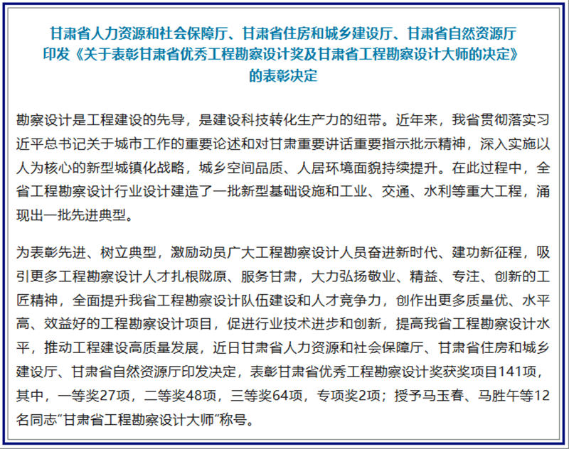 7.甘肅工程咨詢集團斬獲多項勘察設(shè)計獎項