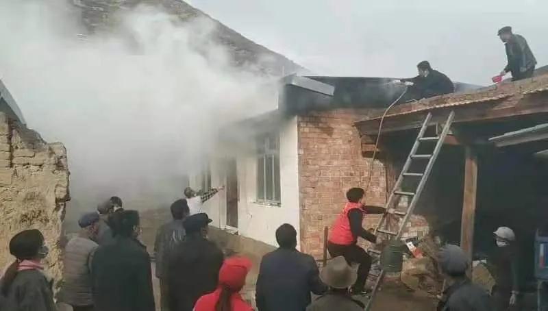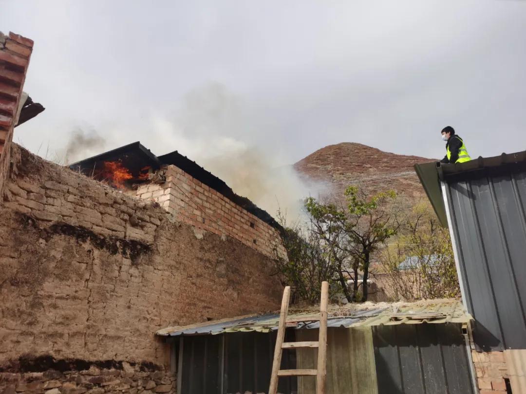 10月30日下午3點(diǎn),交通監(jiān)理公司負(fù)責(zé)幫扶的臨潭縣洮濱鎮(zhèn)馬旦溝村一戶村民家中突然冒出滾滾濃煙,火光在濃煙中忽隱忽現(xiàn)。著火是一座磚木結(jié)構(gòu)彩鋼屋頂?shù)男路?,火從屋頂燒起,越燒越旺。著火的房屋旁邊堆放著多年的老柴火,干燥異常,一絲火星就能點(diǎn)燃,而與著火點(diǎn)緊鄰著的就是布局緊密的鄉(xiāng)親們的房屋,再往外圍則緊接著山林,如果火勢(shì)蔓延,后果將不堪設(shè)想。