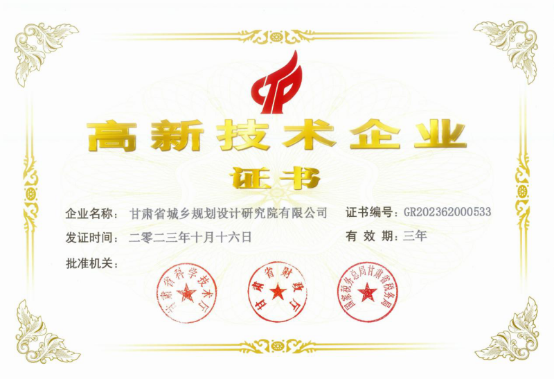 近日,經(jīng)過嚴(yán)格的審批程序,省規(guī)劃設(shè)計(jì)院申報(bào)的國家高新技術(shù)企業(yè)最終通過認(rèn)定并獲得由省科學(xué)技術(shù)廳、省財(cái)政廳和國家稅務(wù)總局甘肅省稅務(wù)局聯(lián)合頒發(fā)的“高新技術(shù)企業(yè)證書”(證書編號:GR202362000533)。
