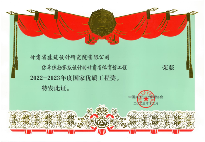 近日,從中國施工企業(yè)管理協(xié)會傳來好消息,由甘肅省工程勘察設(shè)計(jì)大師、省建筑設(shè)計(jì)院總建筑師馮志濤帶領(lǐng)團(tuán)隊(duì)設(shè)計(jì)的甘肅省體育館榮獲“2022-2023年度國家優(yōu)質(zhì)工程獎(jiǎng)”榮譽(yù)稱號。