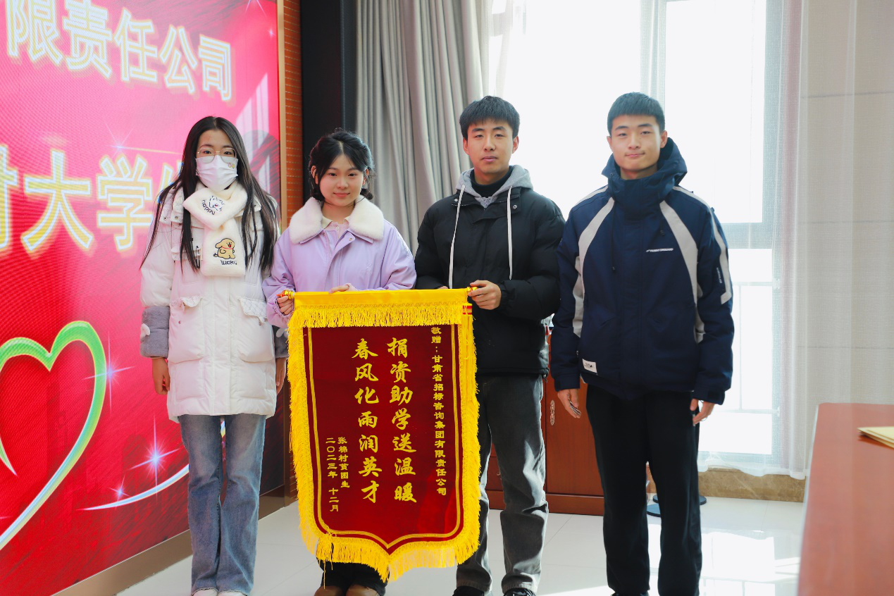 省招標(biāo)咨詢集團(tuán)資助的天水張家川縣張棉驛鄉(xiāng)張棉村蘭大受助學(xué)生代表,到省招標(biāo)咨詢集團(tuán)送上錦旗和感謝信,對(duì)公司長(zhǎng)期以來(lái)資助、關(guān)心他們學(xué)業(yè)的善舉表達(dá)聯(lián)名感謝。
