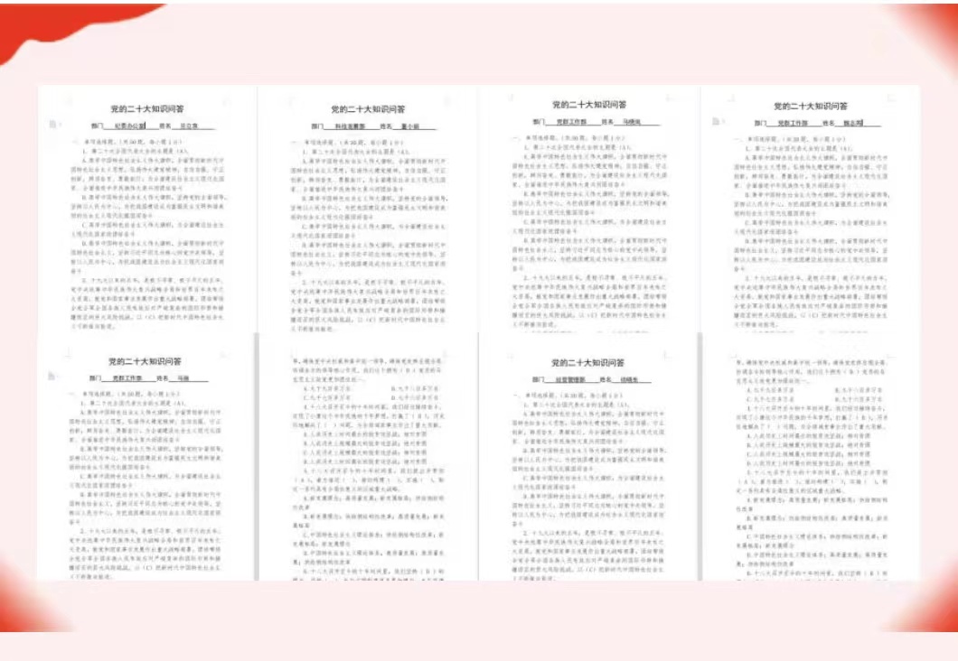 積極組織全體黨員開展黨的二十大報(bào)告相關(guān)內(nèi)容線上答題測(cè)試活動(dòng),檢驗(yàn)學(xué)習(xí)成效,固化學(xué)習(xí)成果,真正對(duì)黨的二十大精神應(yīng)知應(yīng)會(huì)盡會(huì),以考促學(xué)強(qiáng)本領(lǐng)、以學(xué)促用增實(shí)效。